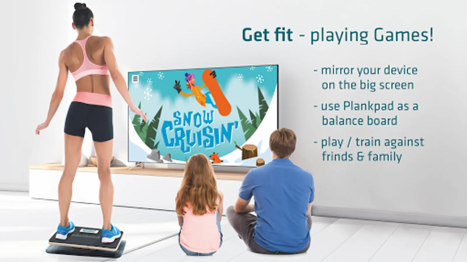 Since the Plankpad can also be used as a Balance Board to train the motor coordination, improve reaction time and to prevent injuries, we created two games specially for balancing. The balance board turns into a surf or snow board and you play fun games while working your lower muscles out and increasing your body balance and stability.