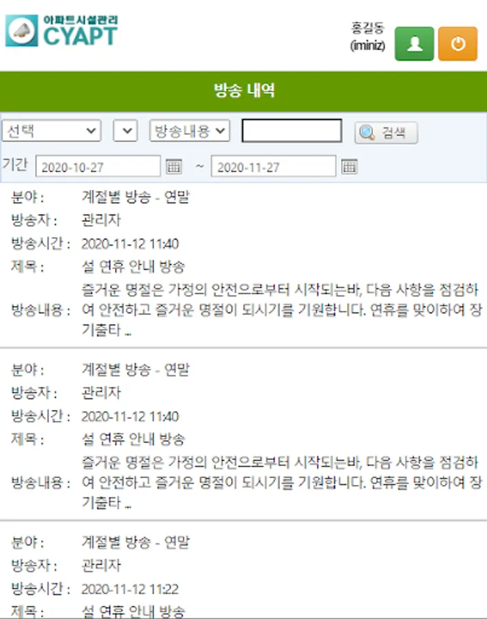 -The management office broadcasts announcements of each household, maintenance work, etc.
