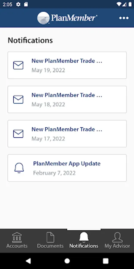 *Notifications feature, including trade confirmations and important messages from PlanMember