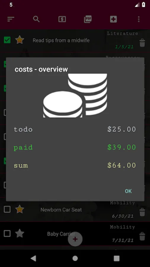 This app gives you a predefined list of useful tips and creative ideas that you can expand. Keep an eye on your costs and time.
