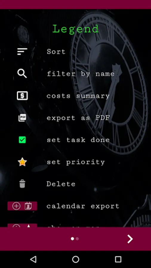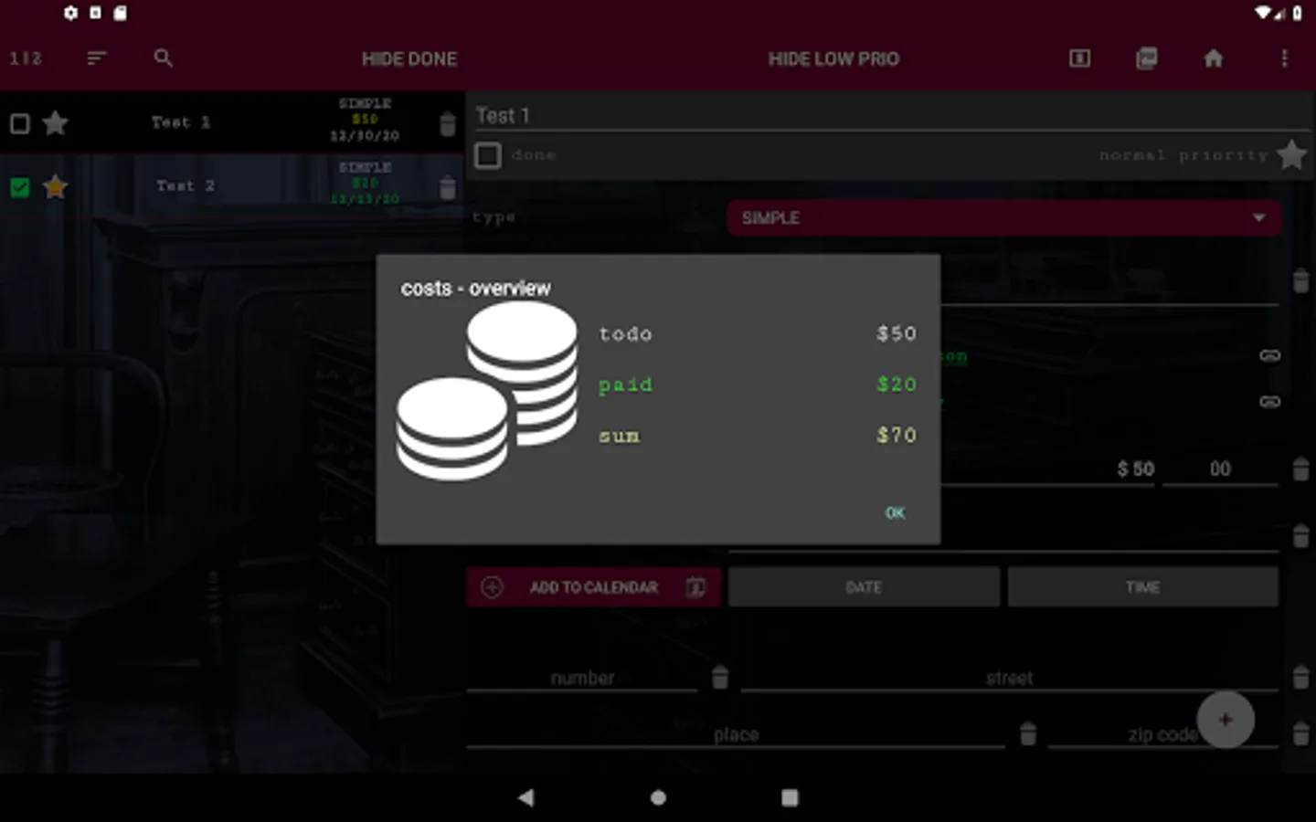 Create Your todo-lists and check your tasks. Organize costs, dates, locations.