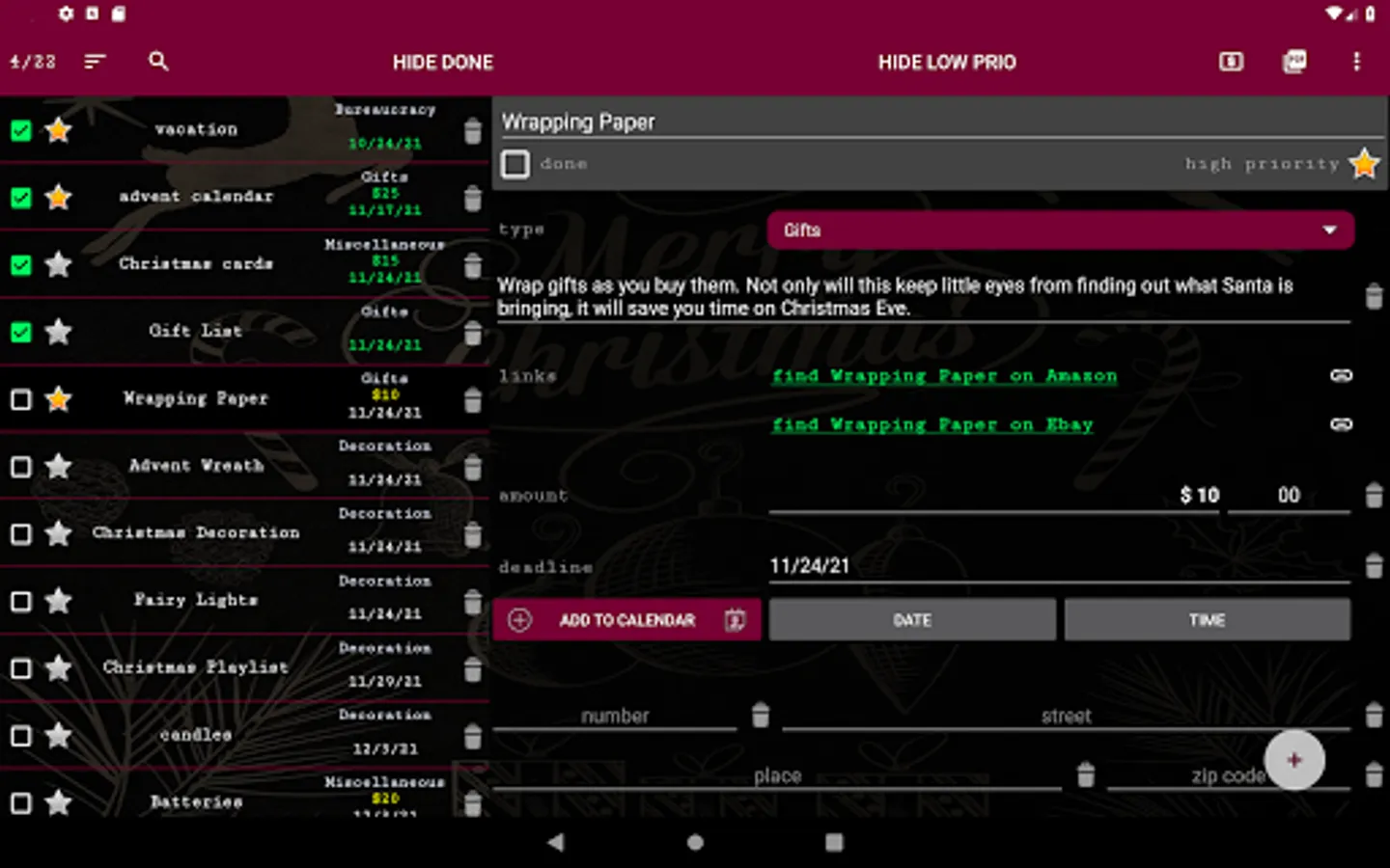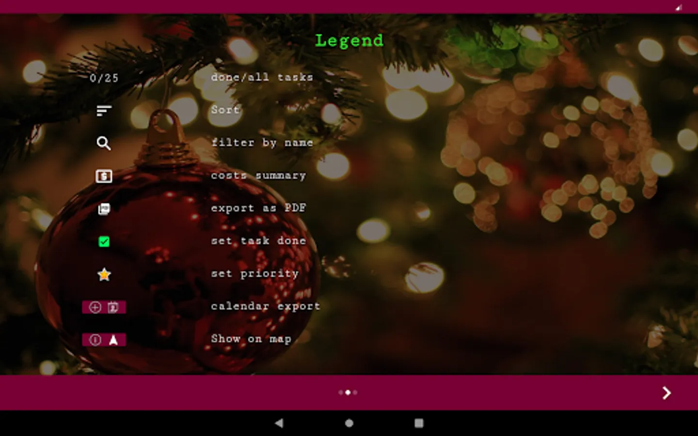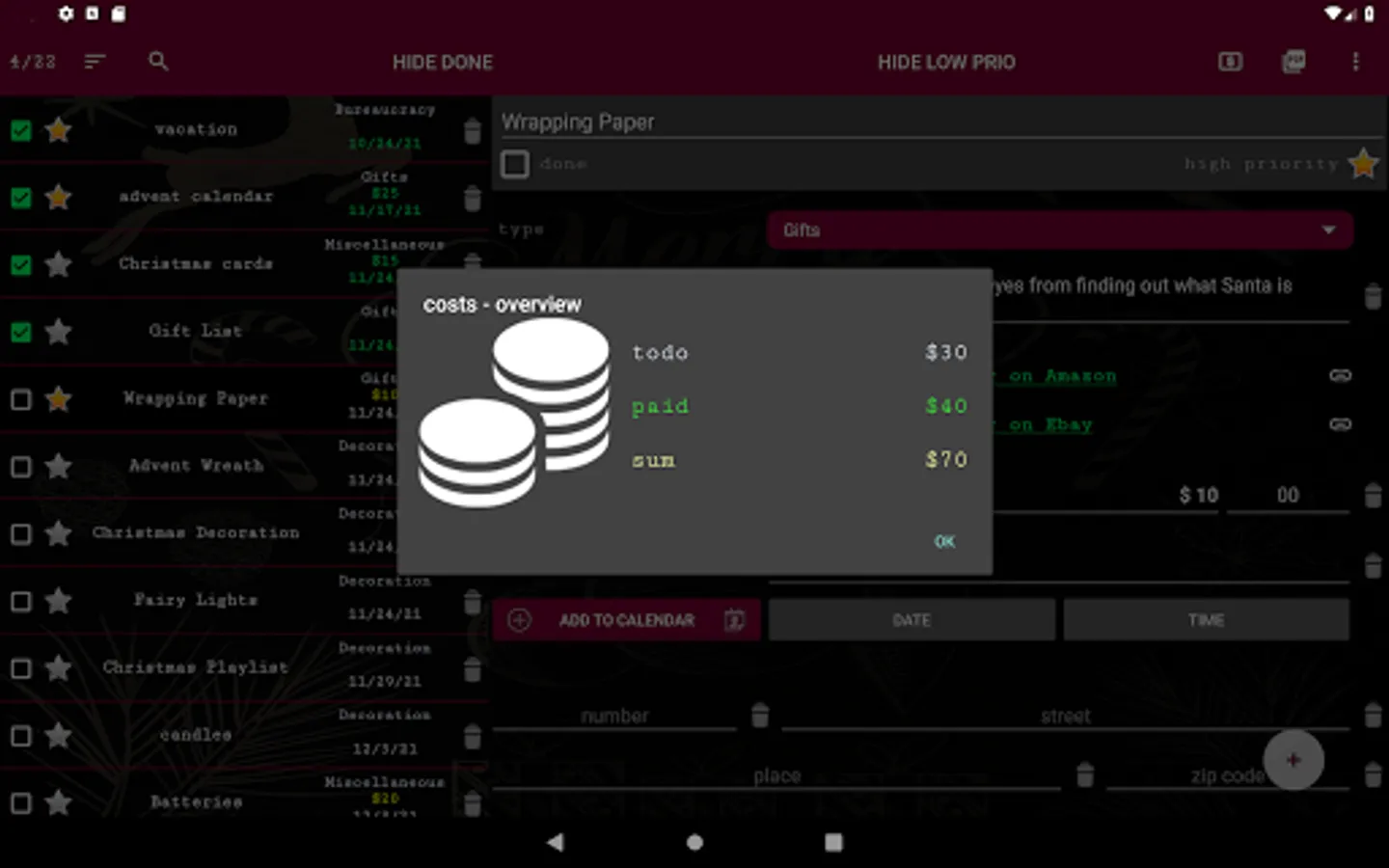 This app gives you a predefined list of useful tips and creative ideas that you can expand. Keep an eye on your costs and time. Individualize, categorize and prioritize your checklist for every phase. Create new tasks, comment on and export them to your calendar or as pdf. Sync with others and schedule your next tasks.