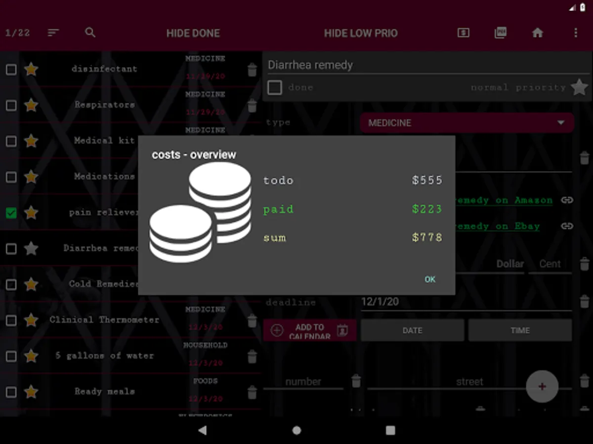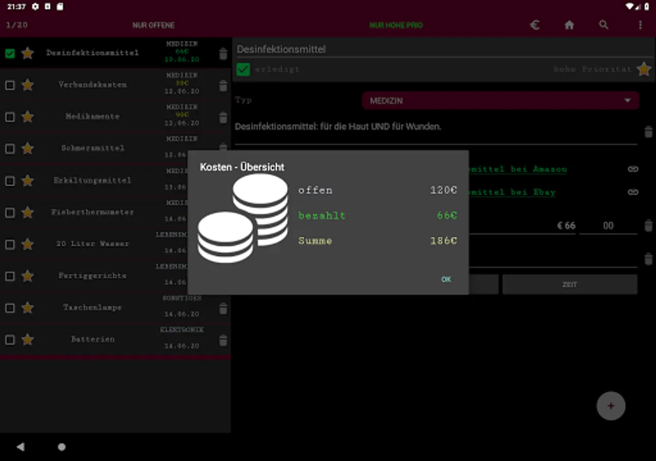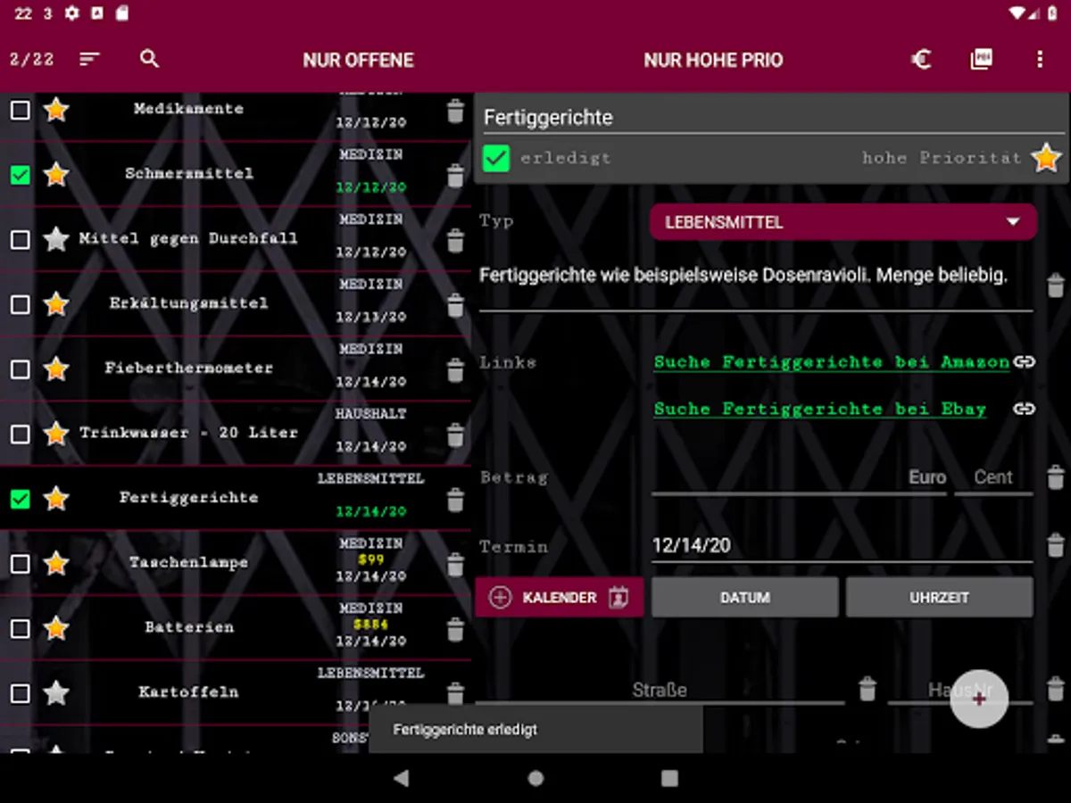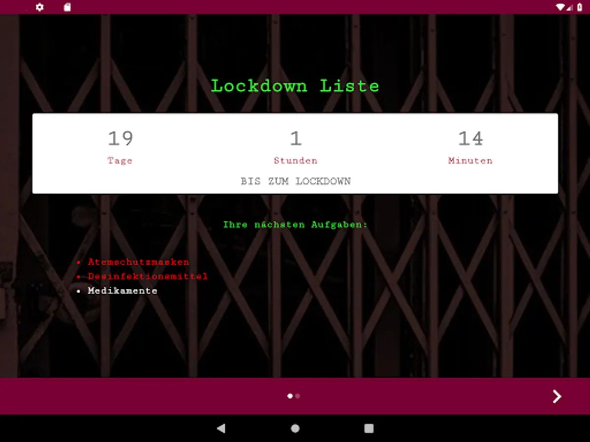 Prepare yourself and your family for a lockdown early. This application is a guide as a checklist and will soon be supplemented with new functions: current case numbers in your region, best practices and news. Categorize and prioritize the checklist for each phase. Create new tasks, comment on them and export them to your calendar.