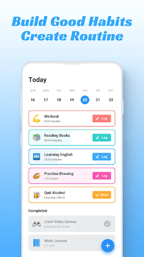 Create different habits and to-dos, set daily, weekly or even monthly goals.