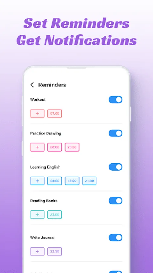 To never forget your scheduled activities, Habit Tracker provides a highly customizable reminder system.