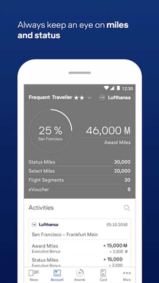 Earning miles is now even easier. With the Miles & More app for Android, you always have all the important information and opportunities to earn at hand. These benefits await you: