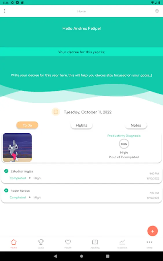 A planning and productivity app, where you can have control of the areas to manage in your life, the goals set, establish an action plan to achieve them, make your daily to-do list, create and keep track of your habits , notes, reading and your health, you will get the statistics and results of your daily productivity and most importantly: you will have everything in one place.✔