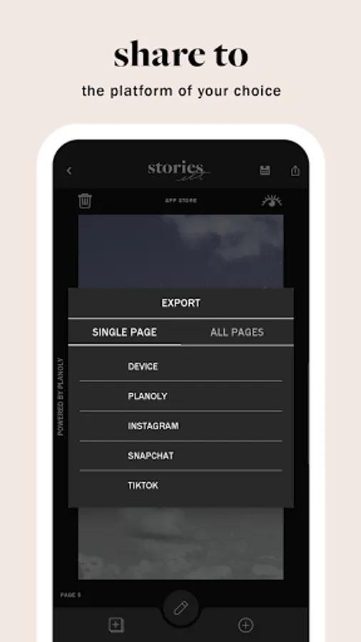 • Share a single page or all pages when sharing to your device, PLANOLY, Instagram, Snapchat, or TikTok.