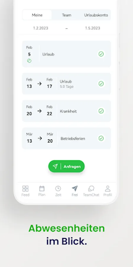 Check your vacation and working hours conveniently via the app and stay in touch with your team. Try it now!