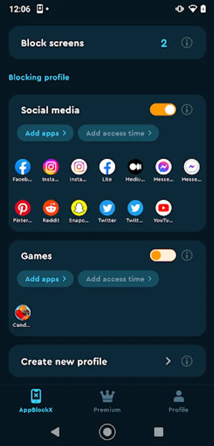 1) Multiple Profiles: Our app allows you to create multiple profiles, each with its own set of app blocks and time limits. This feature is especially useful for families with multiple users.