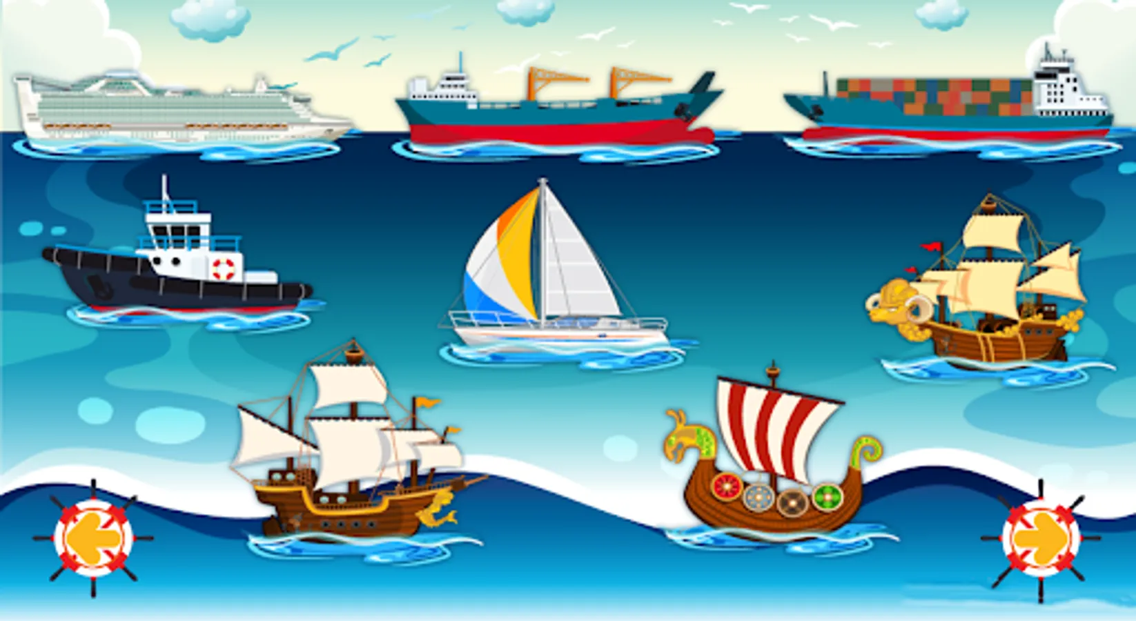 Initially, you will see the first menu with 8 small images of ships such menu in game three each with 8 small ships or boats, clicking on which will fall to the level where you need to be collected from the nine parts of the ship, boat, ship or boat, on the pattern. Once all the pieces are in place there will be a button with which your child will be able to manage it. Also a button to go to a page where you can choose a new ship and assemble it again.