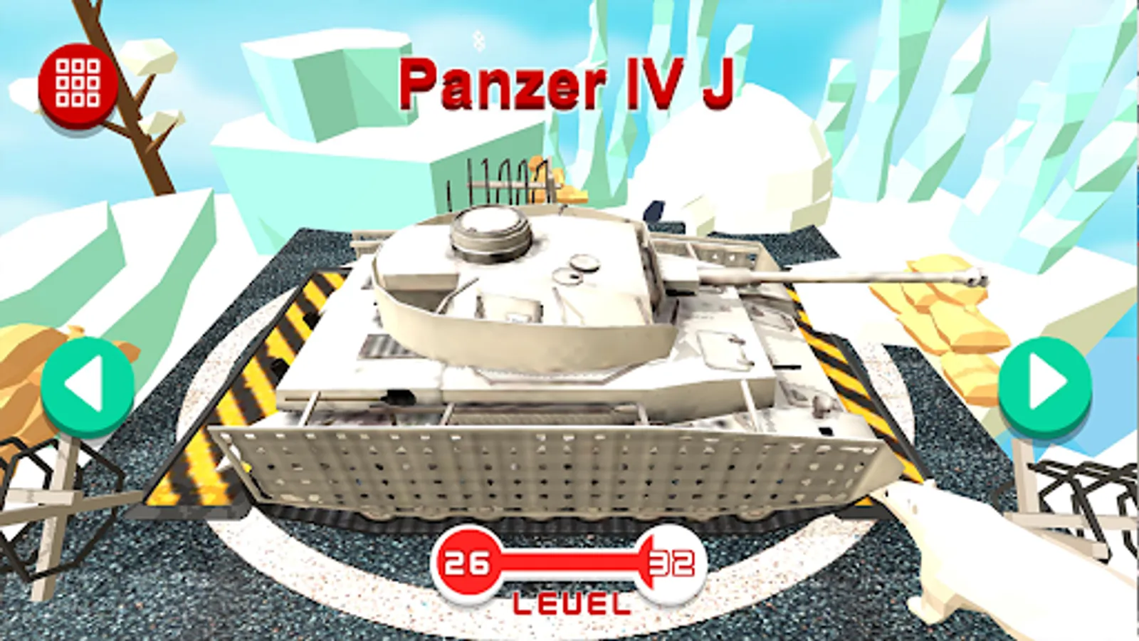 Initially, you will see the first menu with 9 small images of tanks in the game menu, three each with 8 small tanks, clicking on which will fall to the level where you have to be a nine-part build tank, on the pattern. Once all the pieces are in place there will be a button with which your child will be able to manage it. Also a button to go to a page where you can choose a new car again to collect it.