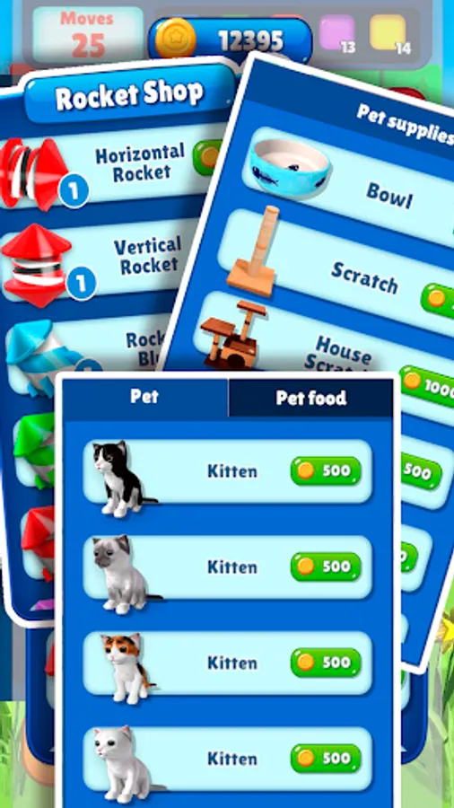 • In the kitten's room you can buy various items such as toys, a house, food.