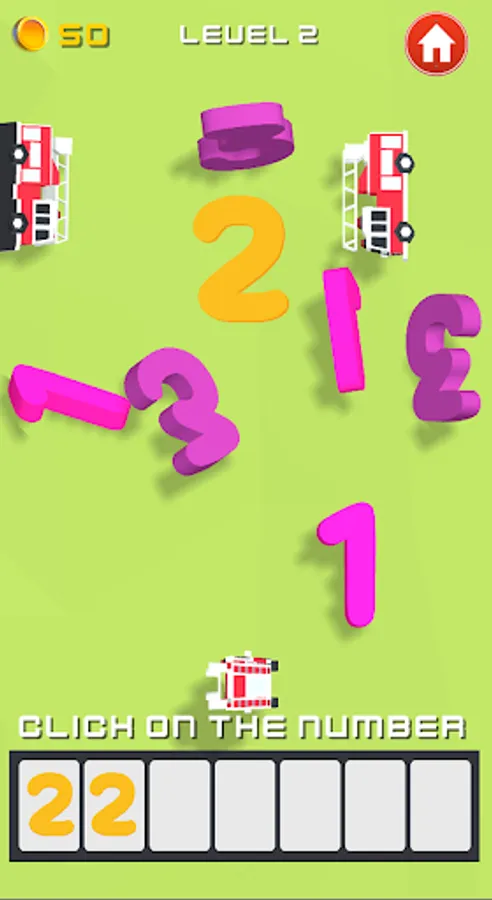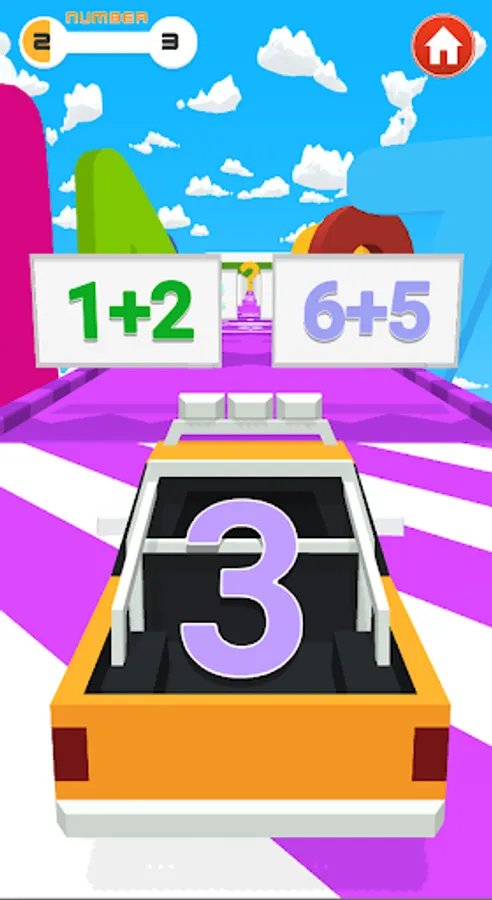 When the game is loaded, you should click on the screen and will appear four buttons with arithmetic operations is addition, subtraction, multiplication and division, it is necessary to select an action that wants to learn your child, then will I have with numbers from 1 to 10 by clicking on the desired number go to the game level, the main task is reached by car from the stratum to the finish line, for that the road needs to be solved examples. You are given next to each example, three possible answers by clicking on the bounce bouncing machine and selects the correct answer if the answer is correct the barrier rises if there is no need to repeat an attempt to jump up and try to choose the right decision given example. The game is considered ended when we arrived and decided to finish all 10 examples.