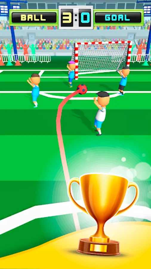 Draw a line from the ball to the goal and choose the right moment to avoid hitting obstacles or team players. All obstacles in the path of the ball move and prevent you from getting into the goal, but you can overcome them if you constantly train and improve your skills. And you will be able to score in the most difficult conditions and even launch fiery balls that sweep away everything in their path.