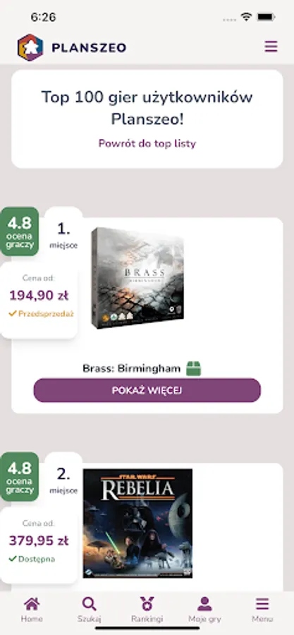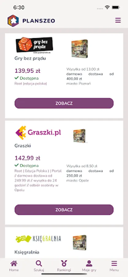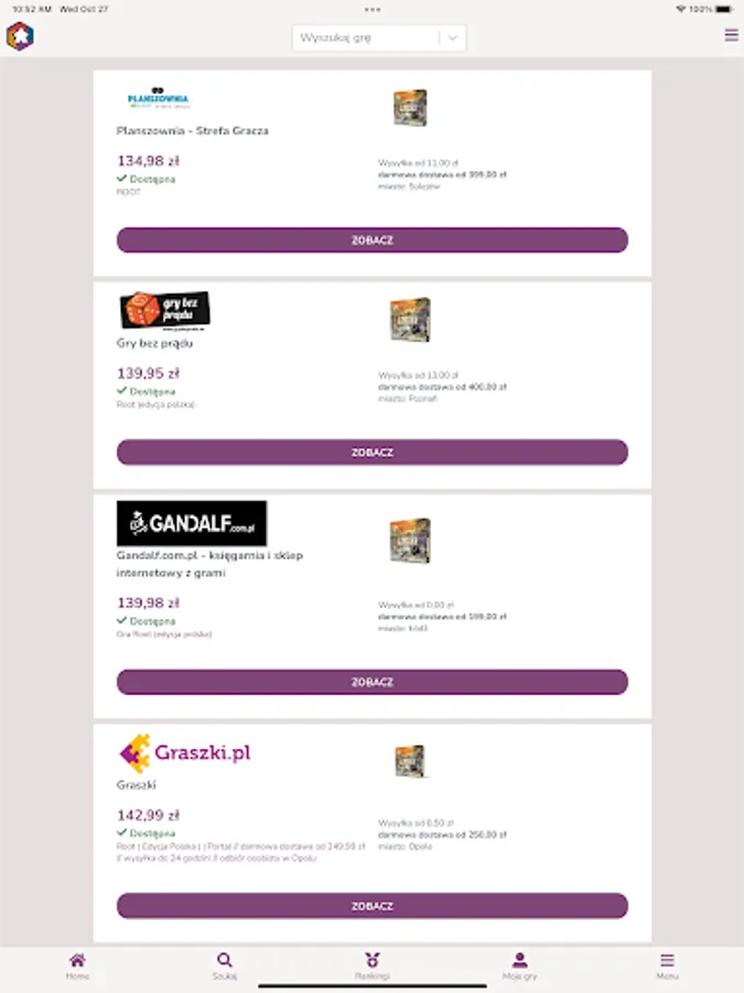 Find a board game for you at the lowest price and convenient location or order online in dozens of stores available in the application.