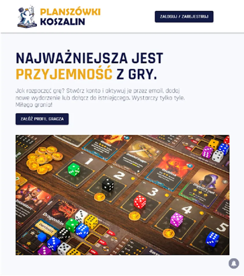 The club was established to bring together fans of board games from Koszalin and the surrounding area. We want to make it easier for all fans of this entertainment to meet, organize events or exchange games. In October 2021, we started meetings. Currently, there are over 200 of us. We guarantee everyone free access to the room and a large number of games. In addition, we have created an application thanks to which we can meet, browse available board games of people from the group and available from the Library or Associations in which we play, it also serves us as a place for communication. A board game meeting is an opportunity to establish relationships, spend time with other people, but also a great way to exercise your mind and memory.