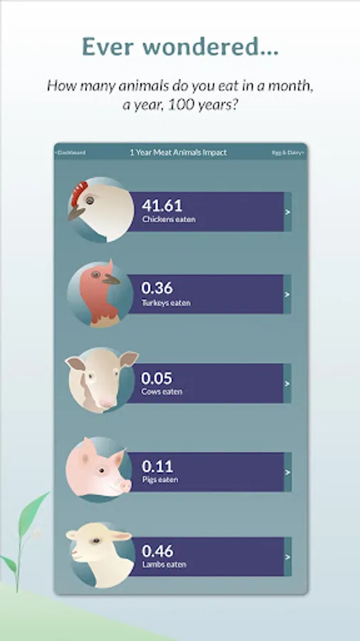 Find out your animal food footprint on Planet Earth from 1 day to 100 years