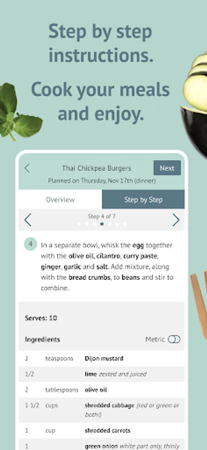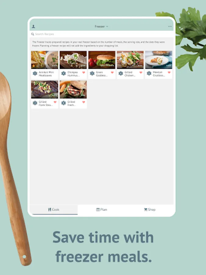 - PERSONALIZED PLANNING: Create meal plans that work for you and your schedule. You can scale servings, reschedule recipes, plan leftovers, and track frozen meals.