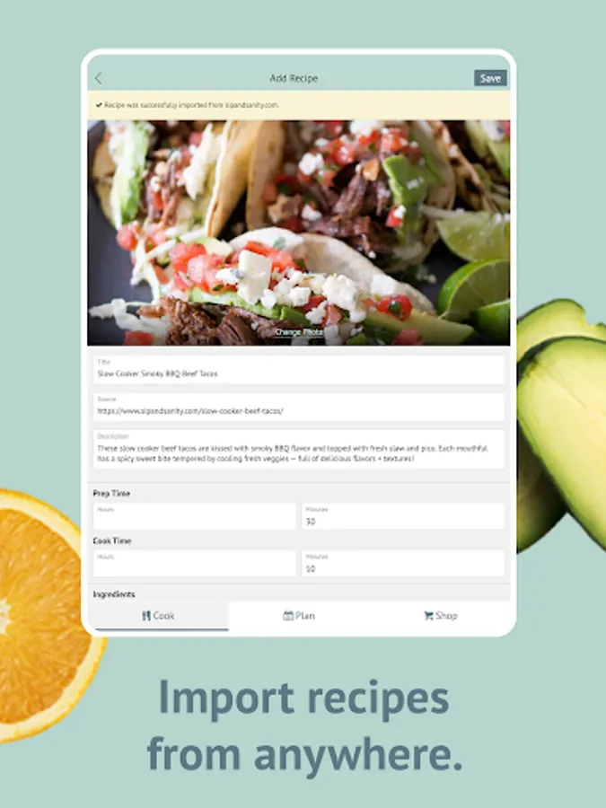 - ALL YOUR RECIPES IN ONE PLACE: Tap the share icon in your web browser to import recipes from the web, or enter your family recipes manually in the app.