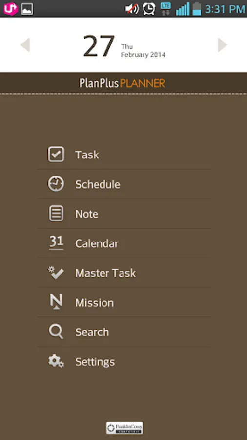 Franklin Planner works around 3 steps:Find, Plan and Act. It consists of PenNote, Task, Schedule, Master Task, Notes, Calendar, Search, Mission, Goldensaying, Backup and ScreenLock.