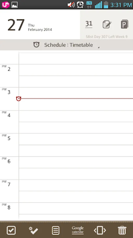 *If you would like to set Google Calendar synchronization, please refer to the User Guide. You can see only the schedules which you marked at Setting>Schedule/Calendar Setting>Schedule View Setting. You must select Google account before entering your schedule. Then you see a G mark on the schedule.