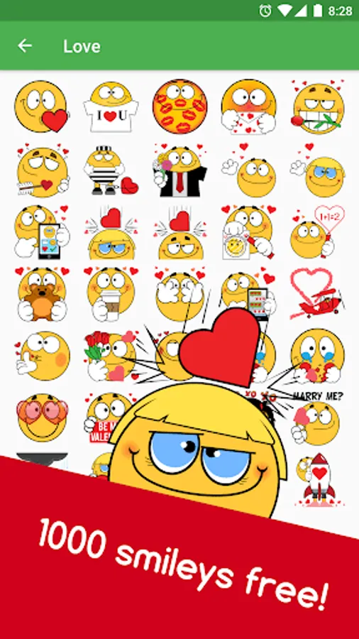 Choose cute emoticons for texting from 30+ themes: whether it's happy faces or sad smileys, love stickers or funny emoji for various holidays, you'll find that right emoticon to send to your friends!