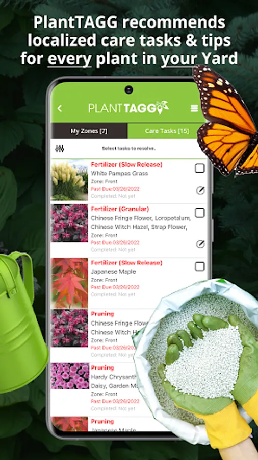 Want to know when and how to fertilize, prune and deal with pests and disease for each unique plant? PlantTAGG’s tasks and tips are crafted and curated by Master Gardeners and tailored for your specific yard location. As you use PlantTAGG's care tasks the system gets smarter. Want to add a custom scheduled care task for a specific plant - no problem.