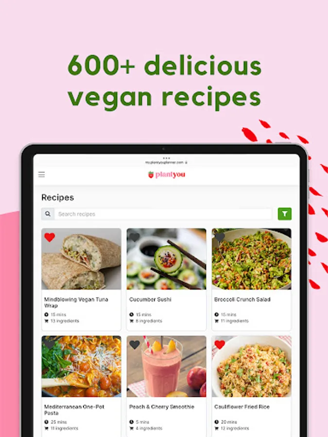 A 100% customizable whole food, plant-based meal planner with over 500 delicious and easy step by step vegan recipes