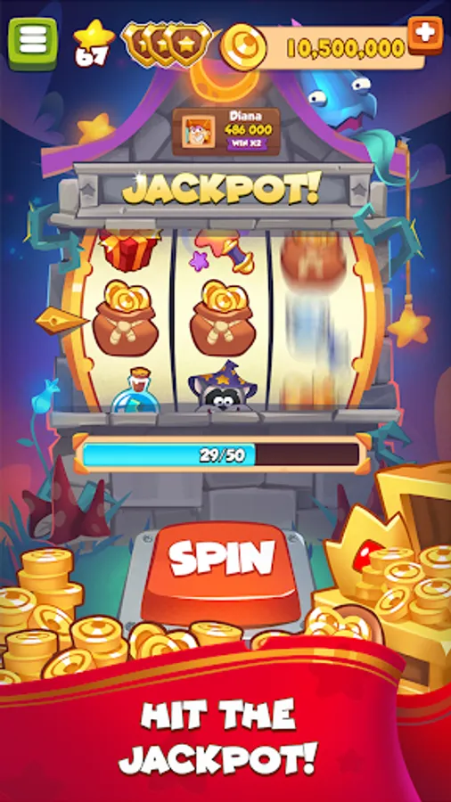 Grab the Magic Coins in wow-spin game. Earn gold sacks, fairy raids, witch-attacks and magic shields.