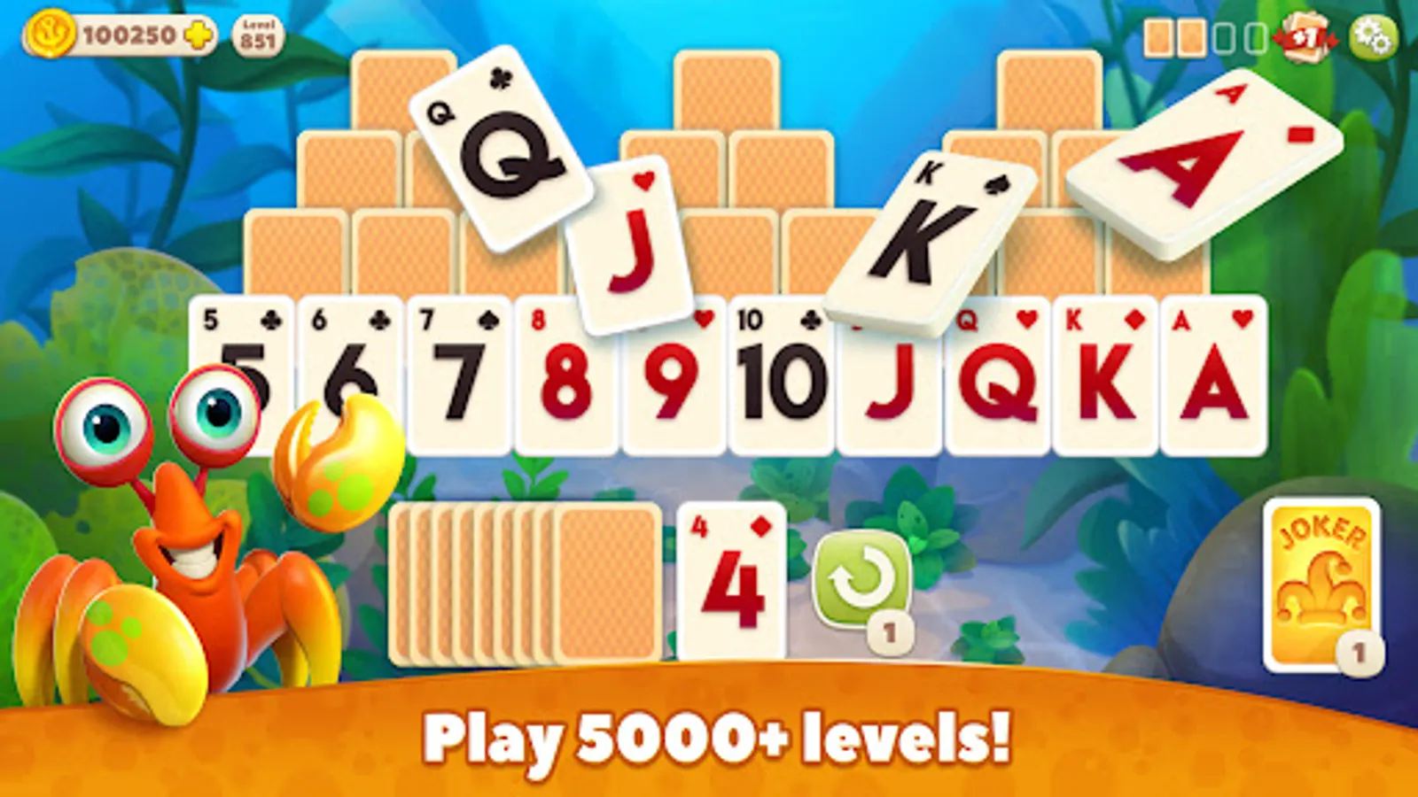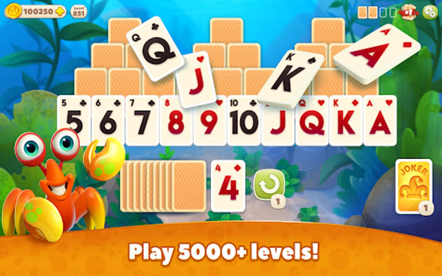 Did you know? Our tri-peaks game is more fun and challenging than the classic & old-fashioned patience, klondike or pyramid. You don't just play cards here - You join an underwater adventure and get to scape your own town while collecting rewards and bonuses.
