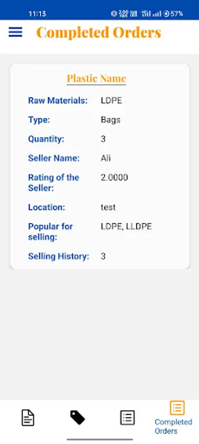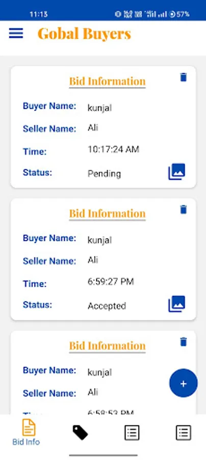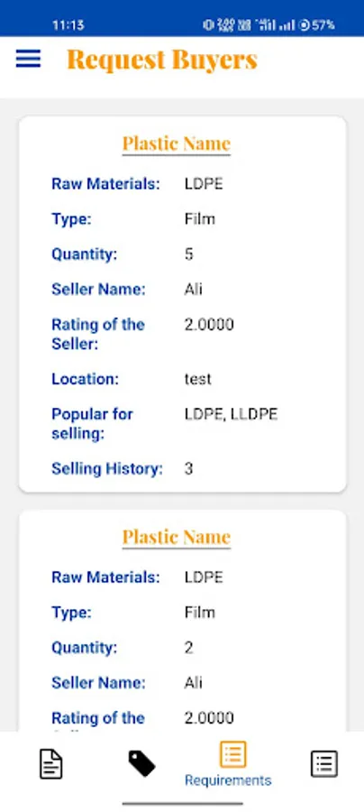 buyer is a create a bid, view a requirements, completed orders and latest price.