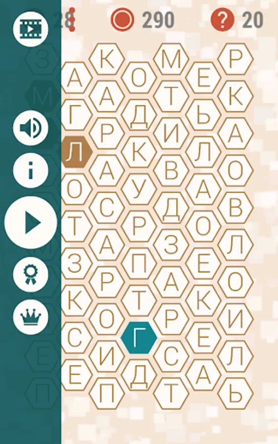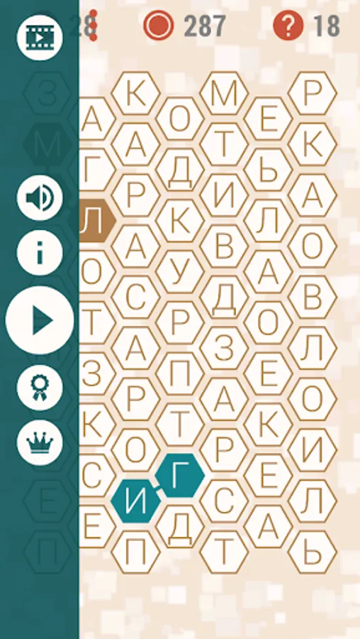 Another feature of the game is the fact that starting from the middle, each level contains a so-called "key" word! It must be composed of those extra letters that are left on the field after finding all words. Only after guessing this "key" word opens the next level!