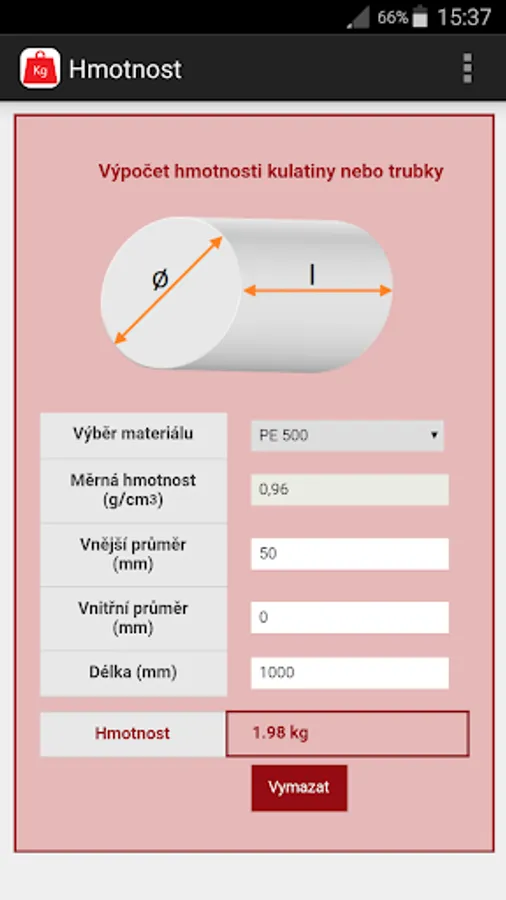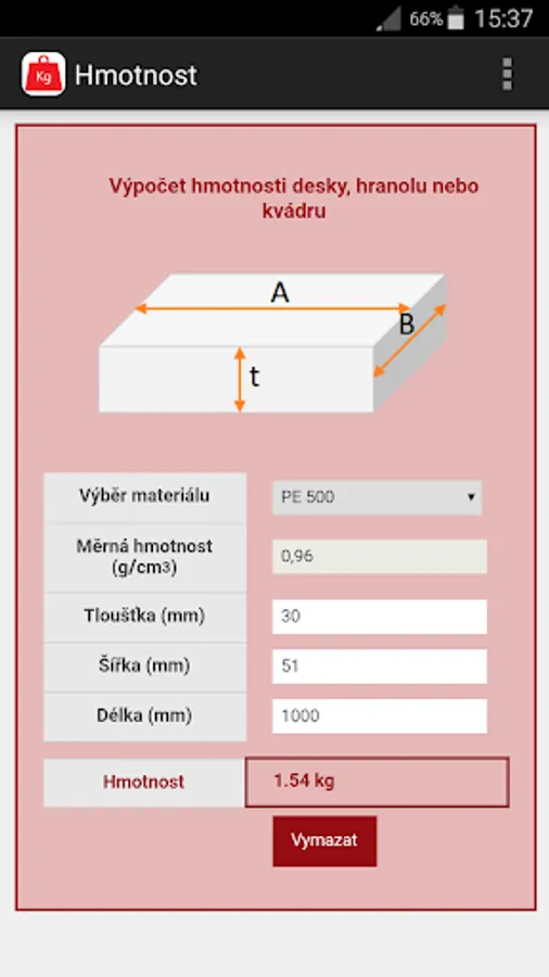 The application makes it easy to calculate the weight of the workpiece.