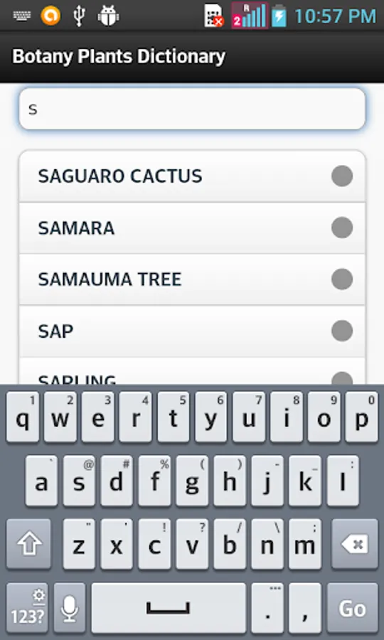 It contain all the word related to plant science botany has included the study of fungi and algae.This dictionary related to plant biology.Each word contain with their description.Search option is also available .It is user friendly kind of dictionary.