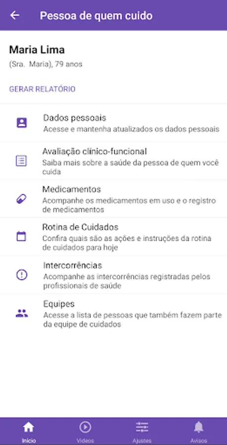 - Propose a Care Plan for the elderly, guiding the actions and instructions necessary for the Care Routine performed by caregivers;