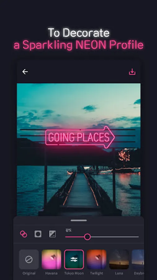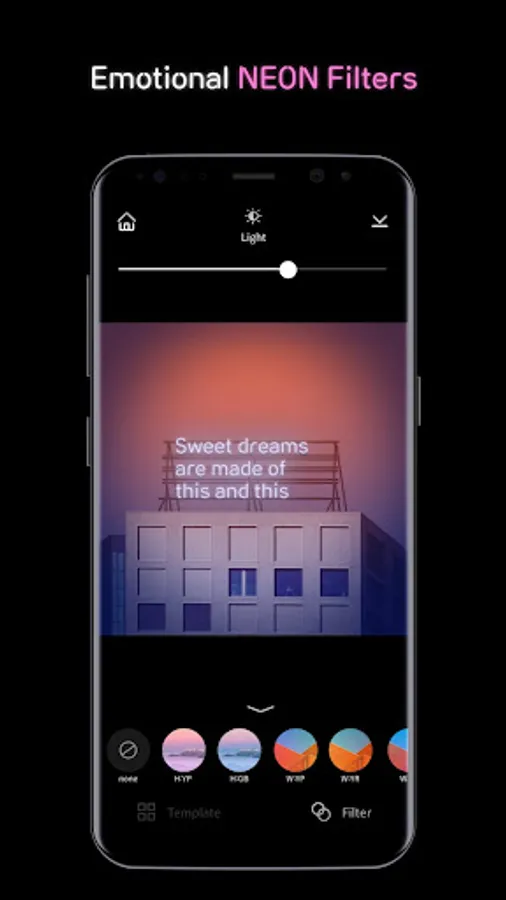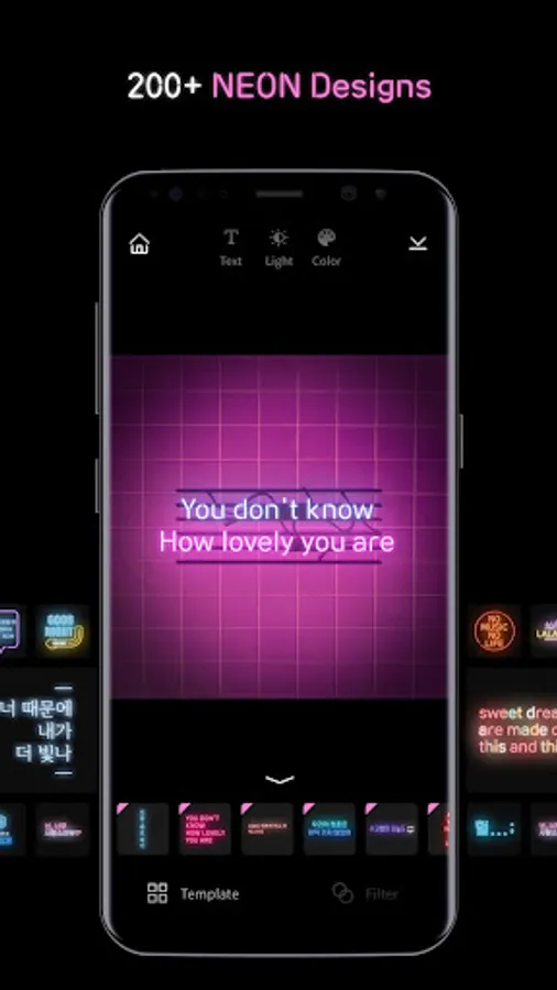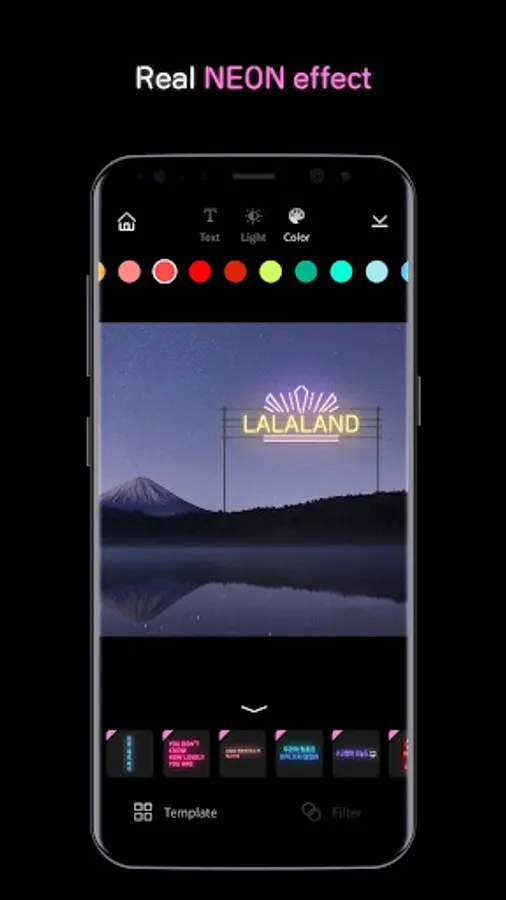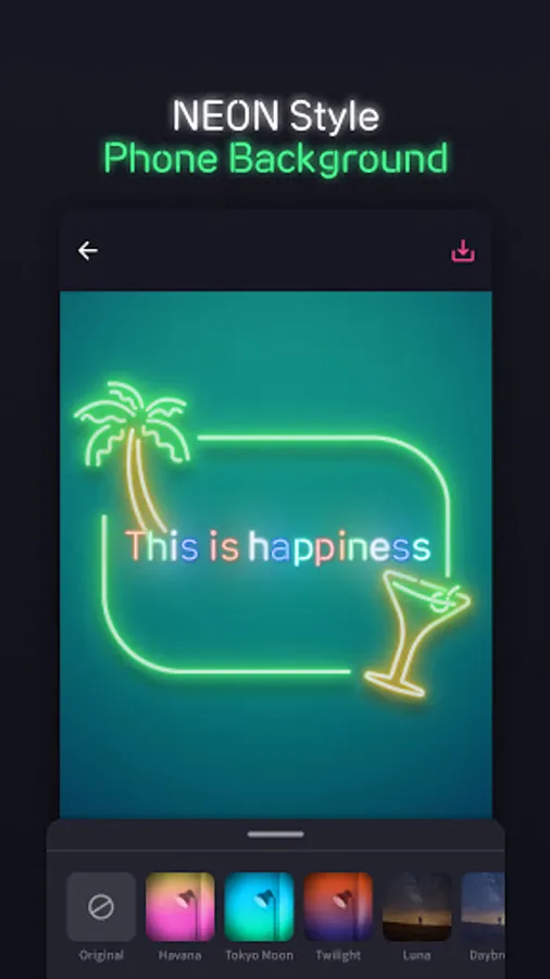 Add colorful NEON design templates and NEON text and icons onto your photos and videos.