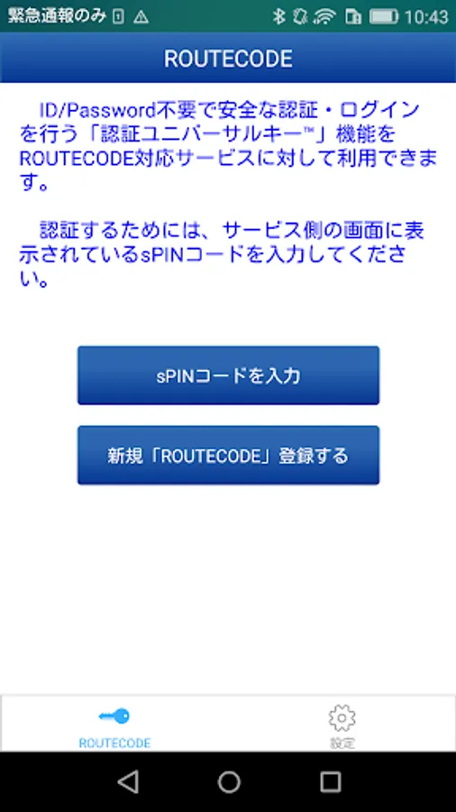 「認証ユニバーサルキー」機能に対応しています。ROUTECODE認証*をサポートする各種サービスの認証キーをこのアプリに保存することでID、Password不要のログイン認証にも利用できます。