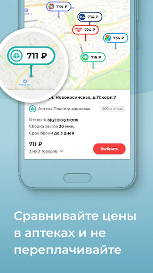 Also, through Megapharmacy, you can always: choose a pharmacy on the map, find out the work schedule, take part in promotions, read reviews, see availability and buy medicines at the right price.