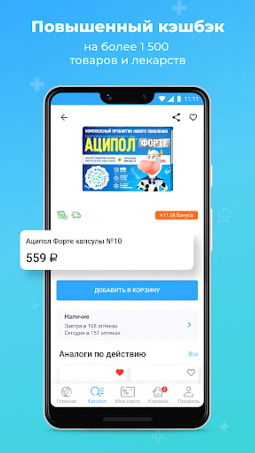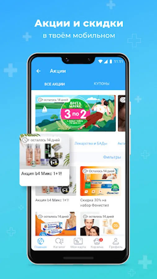 Vita Pharmacy is an online service where you can buy various medicines and health and beauty products. Use the general search by name or go to the product catalog and search by the groups presented in the application. If necessary, compare products and find their counterparts in action.