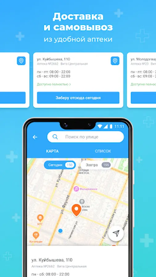 In the application, it is possible to book goods in a pharmacy for self-delivery and home delivery.