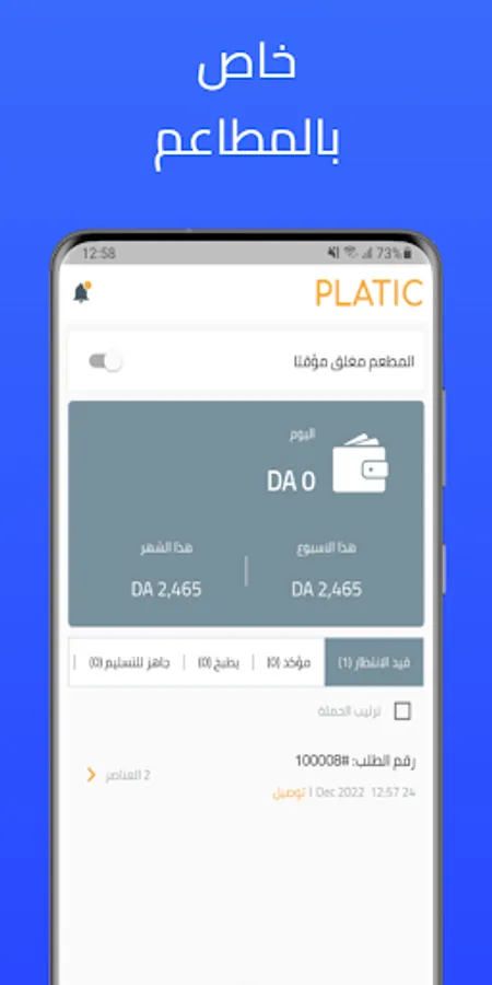 Platic Restaurant it is an app for restaurants only to manage their orders from Platic Food.