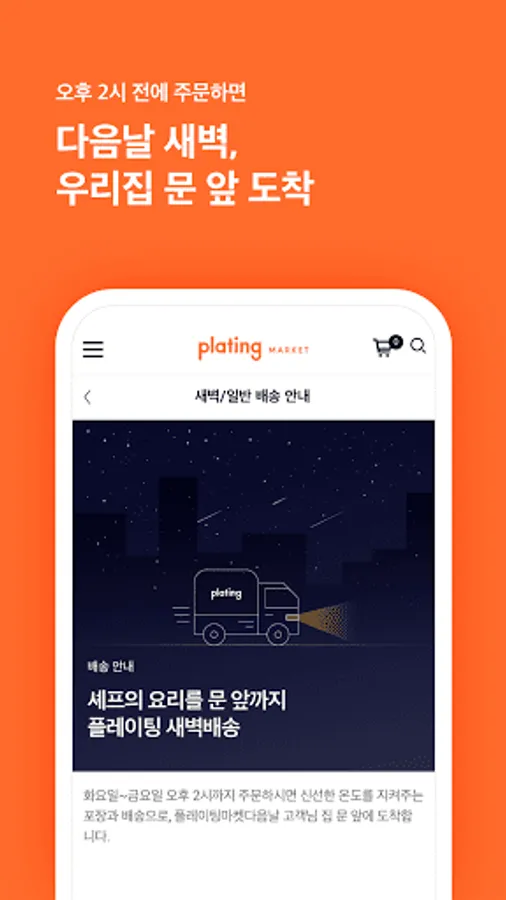Plating Market is a mobile shopping mall where you can easily receive chef's dishes.