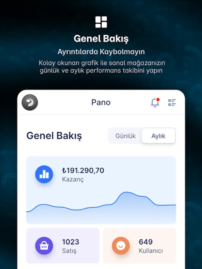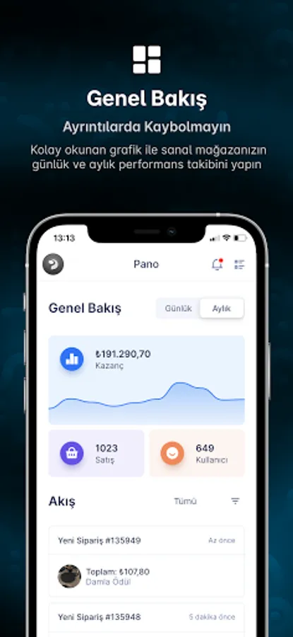 You can easily monitor the performance of your virtual store by following the earnings, sales and customer charts in two segments offered monthly and daily.