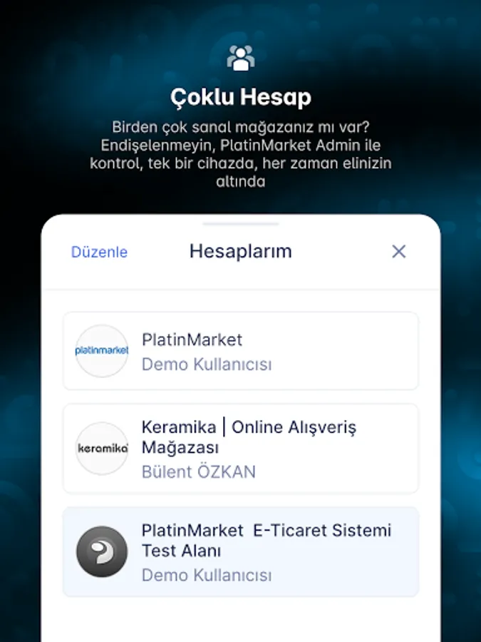 PlatinMarket Admin is a productivity application designed to quickly manage your PlatinMarket Virtual Stores.