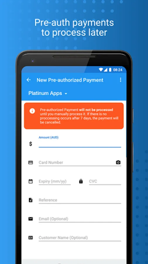 - Pre-authorized payments: Process pre-authorized payments which will automatically be cancelled after 7 days if not manually processed or cancelled prior. Perfect for car rentals and accommodation providers.