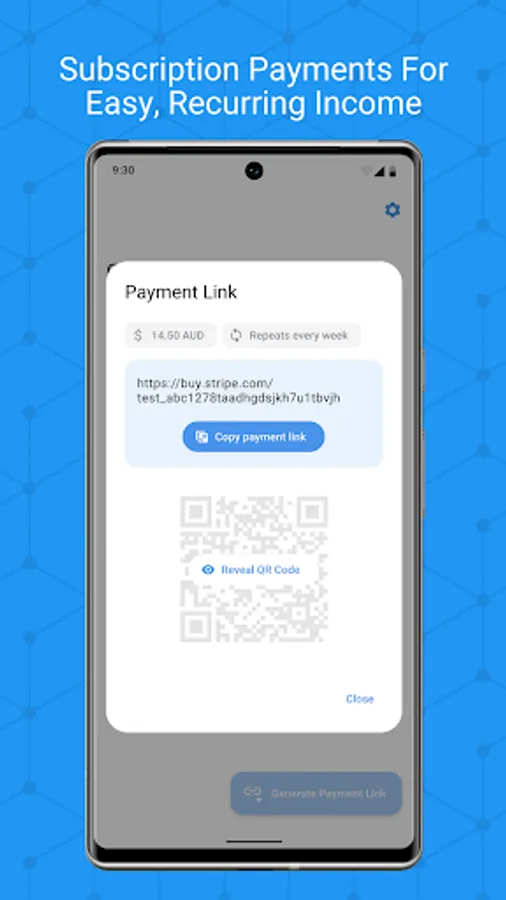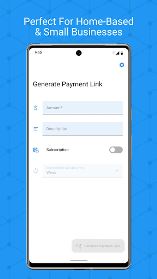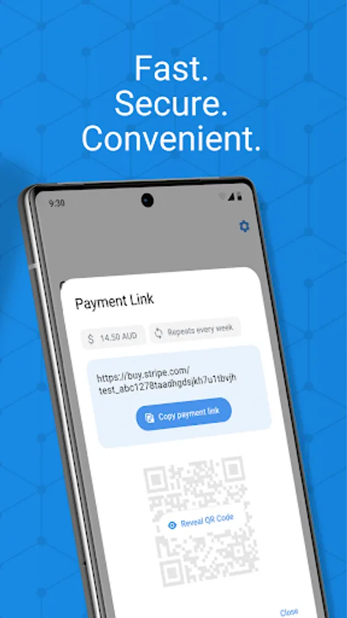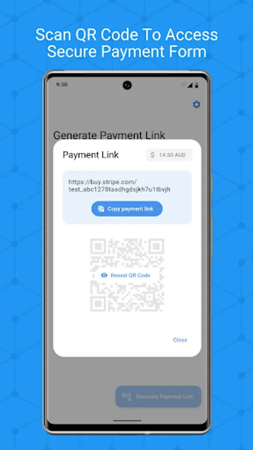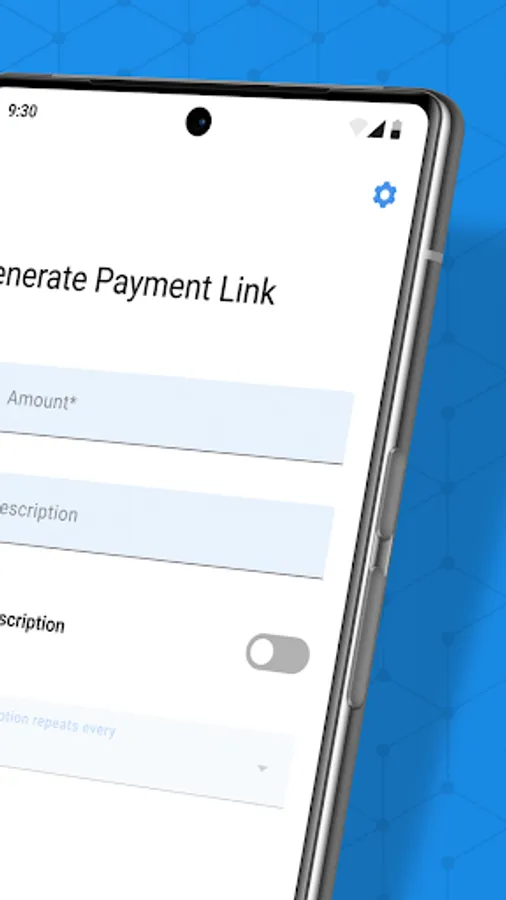- Generate Payment Links: Simply enter the amount and description and the link is automatically saved to your phone's clipboard, ready to share via the email or messaging app of your choice.