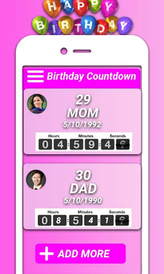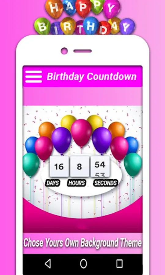 Wish and surprise friends and your love ones using the birthday countdown. Use birthday reminder app countdown birthday countdown and remember any date of birth. Create birthday count down specifically with name and set the counter with birthdays app. enable birthday countdown remember famous birthdays in accurate months, days, minutes and seconds. Birthday countdown gives you feature to track birthday and remaining time and days for any birthday. Set the birthday countdown with any name and get the birthday notification reminder.