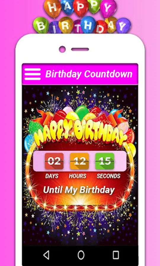 Get birthday countdown which renders exact days until birthday In terms of year month days minutes and seconds. start countdown to birthday along with birthday countdown clock which provides easy way to remind birthday. Friends, family and crush birthday will forget using the birth day count down. Birthday calendar tells time until birthday with countdown days and how many days left. Never forget famous birthdays, get a birthday treat after wishing your friend or love by remembering birthday. Countdown start app gives the dates countdown along with remaining time in birthdays. Famous birthdays is the app to remember birthdays of special people.