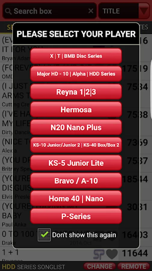 - Song list for T-Series, X-Series, BMB-Series, Home-40 Series, Reyna Series, Bravo / A-10 Series and Nano Series